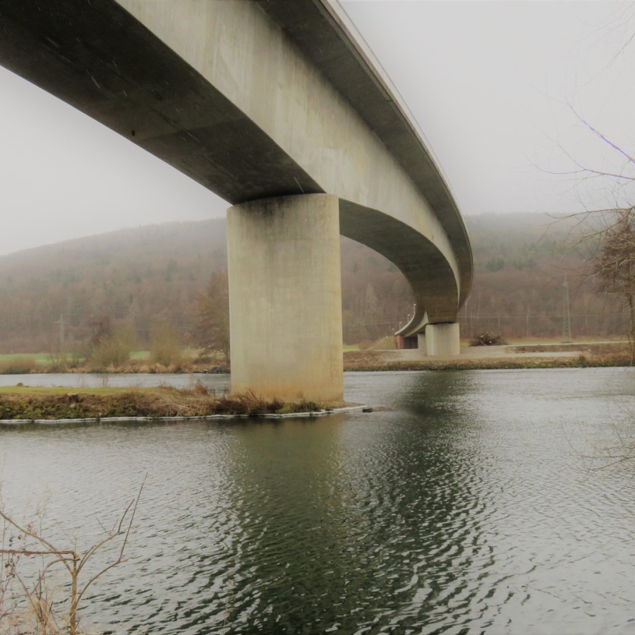 Die Brücke war ein einzelliger Stahlbetonverbund - Hohlkasten, die als "Freivorbau" gebaut wurde. Sie befand sich im Einmündungsgebiet Saale/Main, das Mainfeld hatte eine Spannweite von 110 Metern und Saalefeld 47,5 Meter. Der Rückbau und Abriss der Brücke wurde entsprechend dem ursprünglichen Bauverfahren in umgekehrter Reihenfolge umgesetzt.